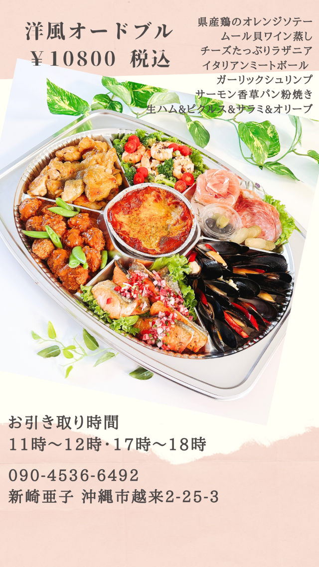 食育活動で幼稚園から小学校での講演会、企業向けの調理講習会、沖縄市市民健康課講師、自宅サロンレッスン、ワイン食堂IPPEIオードブル、仕出しOBENTOU担当、企業むけレシピ開発、ホームページ料理コーディネート、商品開発サポート