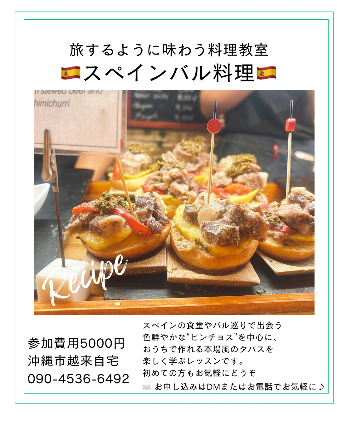 食育活動で幼稚園から小学校での講演会、企業向けの調理講習会、沖縄市市民健康課講師、自宅サロンレッスン、ワイン食堂IPPEIオードブル、仕出しOBENTOU担当、企業むけレシピ開発、ホームページ料理コーディネート、商品開発サポート